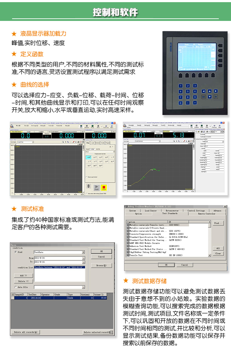 試驗機(jī)軟件為各種材料或行業(yè)測試提供簡潔直觀的操作界面、可用戶編程的強(qiáng)大交互能力、完善的分析與報告功能以及內(nèi)置大量的標(biāo)準(zhǔn)測試方法。即能夠滿足質(zhì)量控制所需的簡單、易用、高效的要求,又能夠滿足科研院所深入研究材料性能所需的個性化試驗要求。